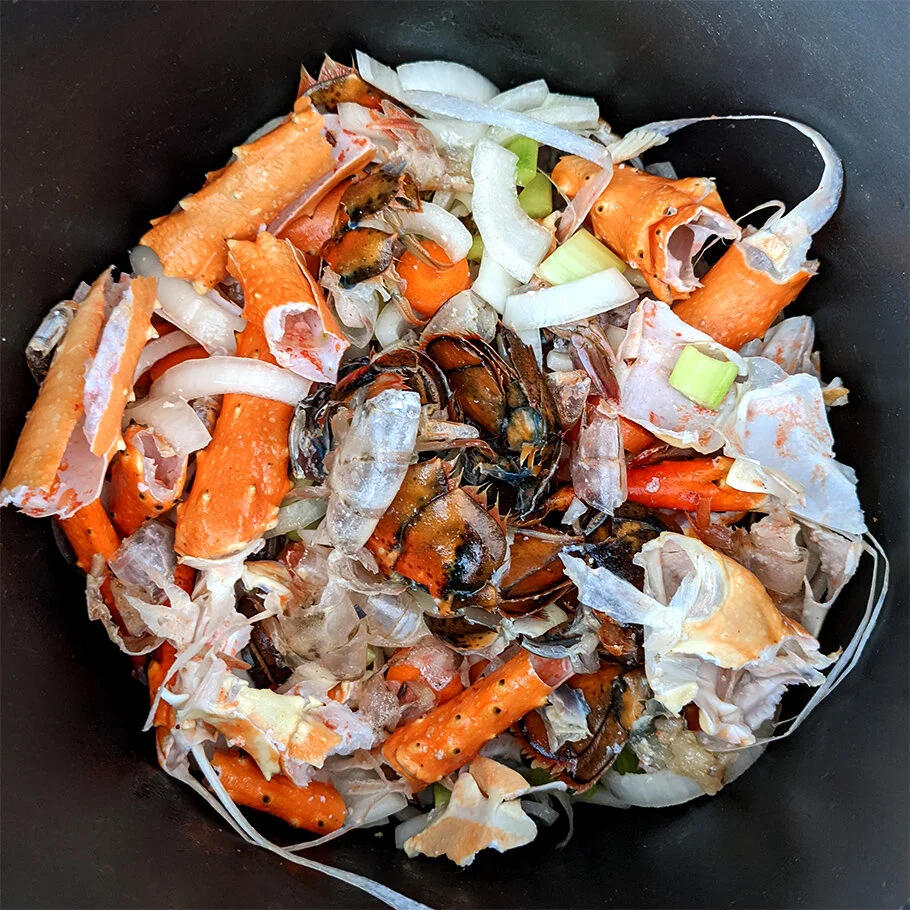 4 - 6 cups broken up pieces of shellfish (I used 4 lobster tails, 2 king crab legs and 12 shrimp shells)